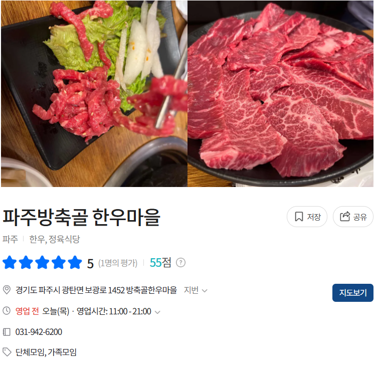 파주 서원힐스CC 인근에 위치한 '방축골 한우마을'은 30년 넘게 한우 요리의 전통을 이어온 곳으로,