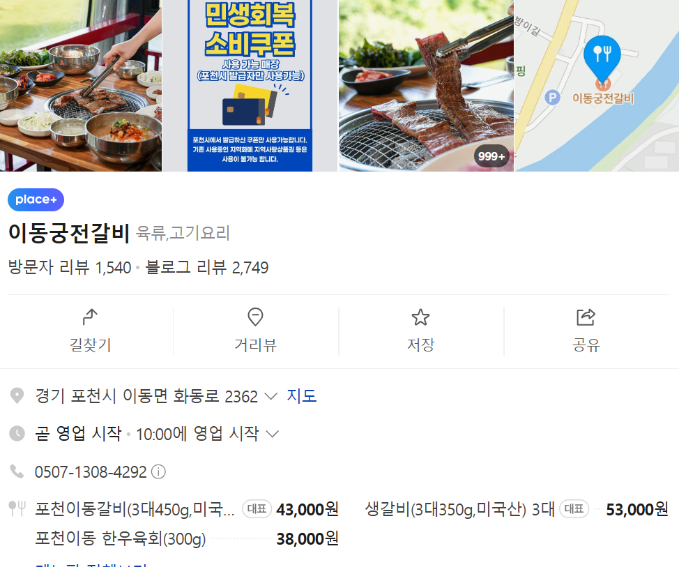 포천 포레스트힐CC 인근에 위치한 '이동궁전갈비'는 포천의 명물인 이동갈비의 진수를 맛볼 수 있는 곳입니다.