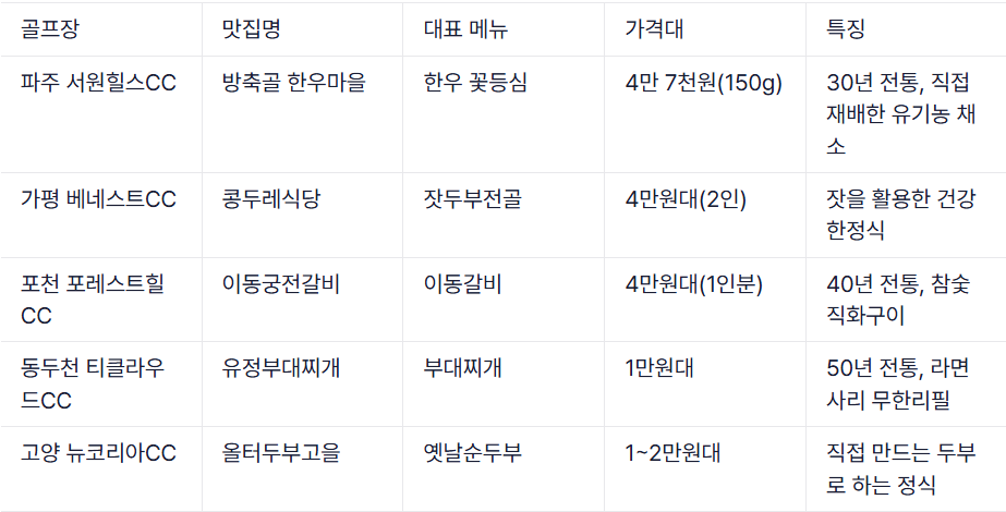 2025년 최신 정보를 바탕으로, 골프 여행의 만족도를 높여줄 경기도 북부 골프장 주변 현지인 추천 맛집 5곳을 소개합니다.