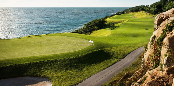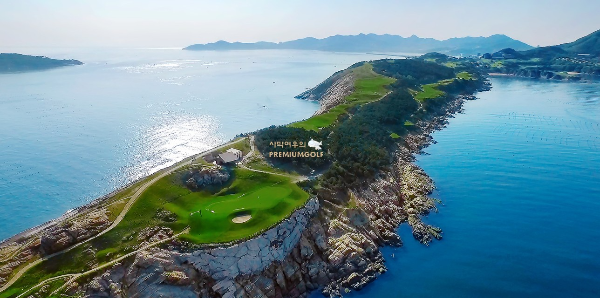 골프리조트는 삼면이 바다로 둘러싸여 있고 황금바위 절벽과