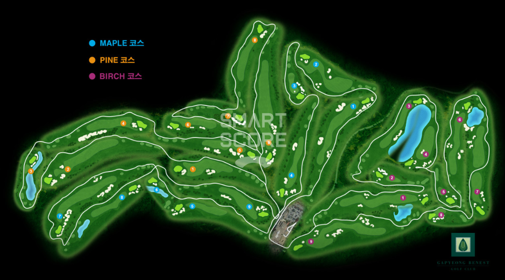 각 코스는 9홀 파 36으로 구성되어 있어