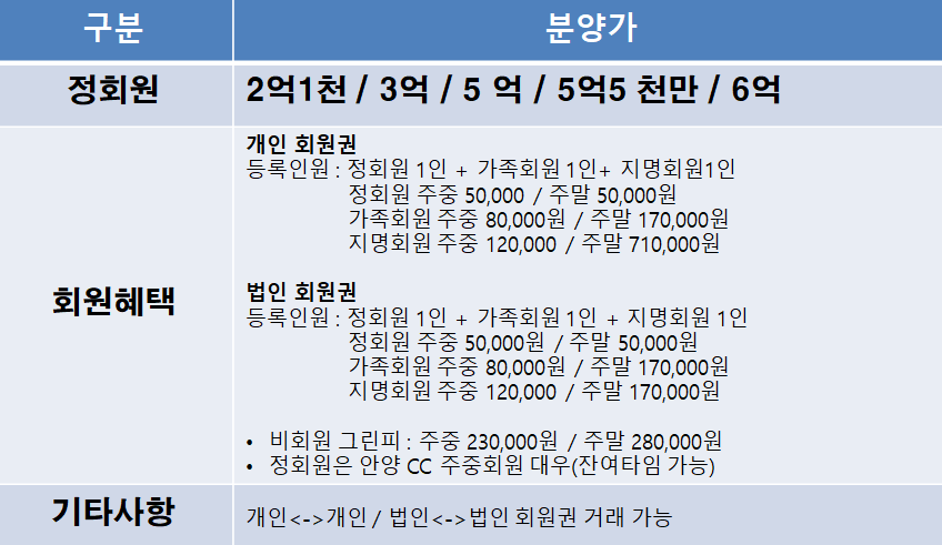 * 분양가별 자세한 회원 혜택에 관해서는
