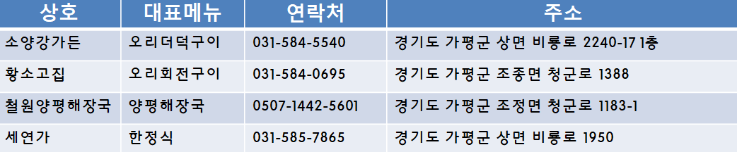 "가평 베네스트 근처 추천 맛집 "