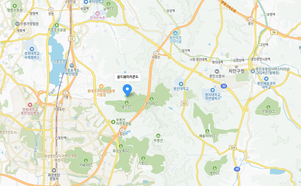 골드CC 좌회전 → 코리아CC방면 → 50m직진 후 우측 → 골드훼미리콘도 (코리아골프프라자)