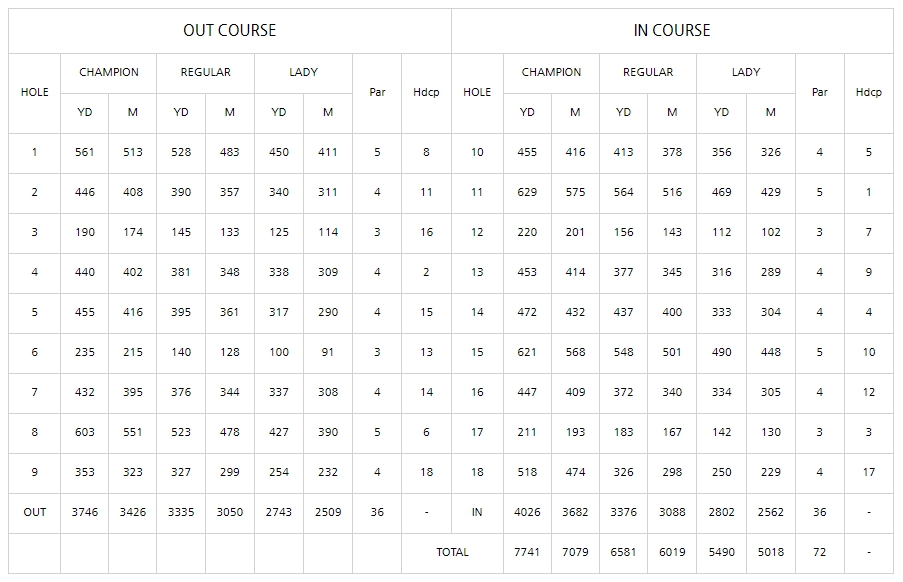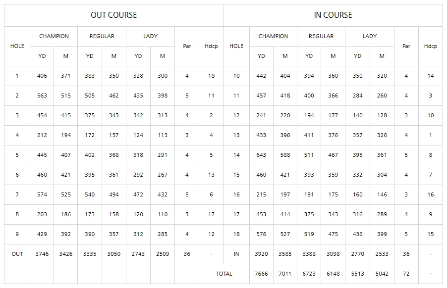 규 모 | 140만평 (회원수 : 441명) | 18홀 - 회원제, 퍼블릭 - 36홀 |